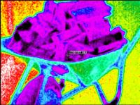 cold firewood in wheelbarrow Horse on meadow Budgies in cage